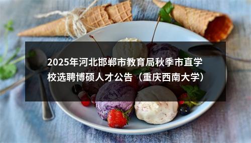 原标题:邯郸市教育局2025年秋季市直学校选聘博硕人才公告(重庆西南大学)