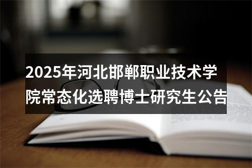声明:专注 2025年河北邯郸职业技术学院常态化选聘博士研究生公告 相关岗位分析;专业指导面试技巧;保障就业成功概率。