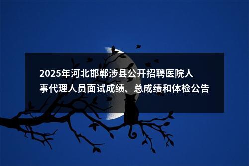 原标题:涉县2025年公开招聘医院人事代理人员面试成绩、总成绩和体检公告