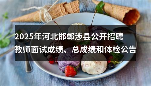 原标题:涉县2025年公开招聘教师面试成绩、总成绩和体检公告